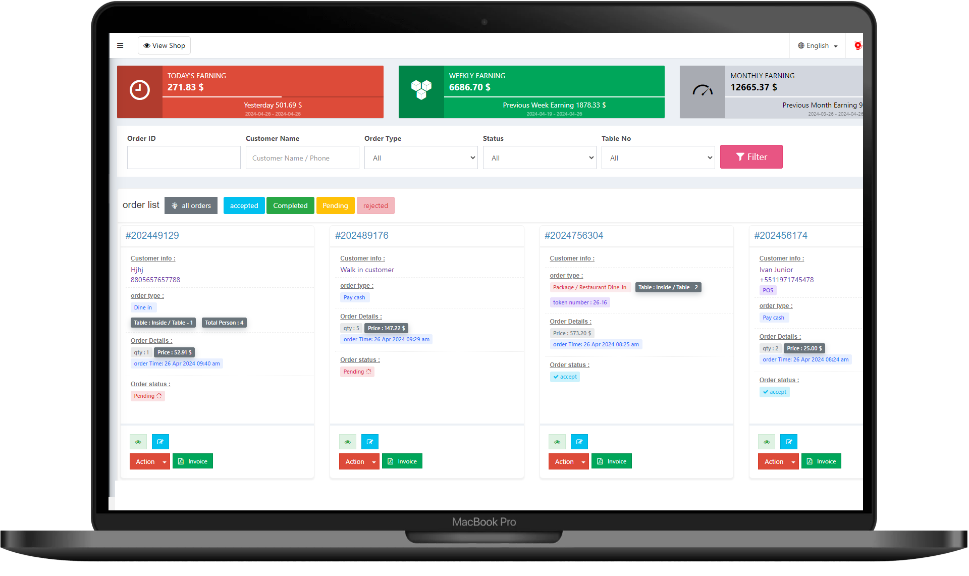 The dynamic QR code builder allows you to create codes with items, logos, and text. You can enable or disable customer login, and collect ratings and feedback. Print invoices, export PDFs, and analyze sales statistics with ease. Use our dynamic nearby shop feature, which lists items based on location, and take advantage of dynamic SEO fields integrated with Google Analytics and Facebook Pixel. Additional features include order tracking, product duplication/cloning, drag-and-drop product sorting, reordering previous orders, dynamic WhatsApp messaging, and order notifications with sound, ensuring your restaurant runs smoothly.